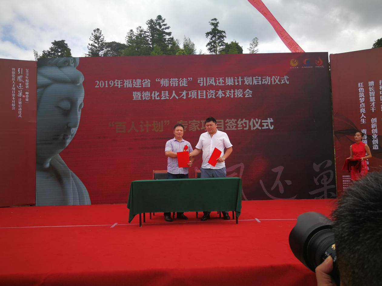 2019年7月吳唐青董事長(zhǎng)受邀作為“百人計(jì)劃”專(zhuān)家參與福建省“師帶徒”引鳳還巢計(jì)劃。